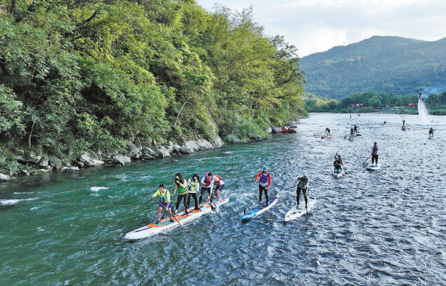 黄顺称,楠溪江是开展桨板运动天然的绝佳场地